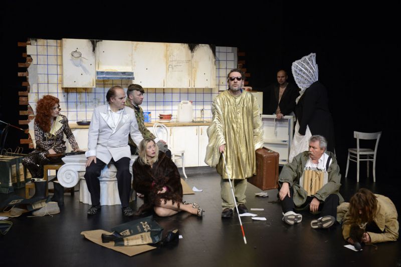 Novo leto je Slovenskemu narodnemu gledališču Nova Gorica prineslo šesto uprizoritev letošnje sezone. Tokratna predstava je bila v vseh ozirih posebna. Najprej zato, ker se je na slovenskih odrih krstno pojavila komedija Bogastvo – Ploutos velikega grškega predstavnika stare komedije Aristofana, ki je prvič bila uprizorjena v Atenah l. 388 pred Kristusom. SNG Nova Gorica pa jo je premierno uprizorilo na malem odru, v četrtek, 10., in v petek, 11. januarja 2013, v režjii Luke Martina Škofa, predstavnika mlajše generacije režiserjev, ki nenehno iščejo nova izrazna umetniška pota. Čeprav je nastala v nam izredno oddaljenem času in v drugačnih razmerah, je njena vsebina silno aktualna. Kot že sam naslov pove, se vsebina suče okrog bogastva, ki ga navadno uživajo nevredni malopridneži, medtem ko se morajo pošteni ljudje celo življenje truditi za vsakdanji kruh in se večkrat prebijati celo skozi revščino. O tem je prepričan pošten Atenec Hremil, ki bi rad v Apolonovem svetišču izvedel, ali se bo moral vse življenje otepati revščine tudi njegov sin. Preročišče, ki ga je obiskal v družbi zvestega služabnika Kariona, mu da zagoneten odgovor: slediti mora prvi osebi, ki jo sreča po odhodu iz templja. In Hremil stori natanko tako: sledi ušivemu, zanemarjenemu slepcu. Ta pa se izkaže, da ni nihče drug kot sam bog Ploutos. Slep pa je zato, da bi čim bolj pravično razdeljeval bogastvo. Hremil pa ga, v prepričanju, da bo potem vse boljše, pospremi v Asklepijev tempelj, da bi spregledal. Žal pa tudi tako Hremil ne doseže tega, kar je želel. Ko tudi preprosti, prej dobri in pošteni ljudje okusijo lesk zlata, se izpridijo. Nihče noče več delati, vsi bi radi imeli zmeraj več denarja. Prav na to je zaman svarila Revščina in jim zagotavljala, da, ko bodo obogateli tudi revni, nihče ne bo več hotel garati. “Ali boste žrli denar in zlato”? jih je izzivalno vprašala. Na tem antičnem mitu sta svoje videnje o bogatenju, bogastvu oz. kako bi bilo, če bi bilo bogastvo enakomerno porazdeljeno med ljudmi, in v povezavi s tem o današnjih dogajanjih, predvsem v Sloveniji, zgradila avtorsko priredbo dramaturg Jaka Andrej Vojevec in režiser Luka Martin Škof, ki je bil tokrat tretjič gost v novogoriškem gledališču. V tekstu sta Vojevec in Škof hotela prikazati, kako “Slovenci razmišljamo o družbi, tranziciji, svobodi, obliki vladanja. Kakor sta sama dejala, besedila nista dokončno izdelala, izoblikovalo se je sproti na vajah, tako da je vsak od nastopajočih igralcev doprinesel nekaj svojega. Tako se je razvijala nekakšna “eksperimentalna” predstava, kakor v zlatih časih goriškega festivala malih odrov. Nastala je drzna, mestoma duhovita, na trenutke pa taka predstava, ki ne malo zmede gledalca, ki mora ‘ujeti miselno nit’. Avtorja sta tudi poudarila, da uprizoritev vsebuje elemente “metagledališča”, ko se oder povezuje z občinstvom, zabrisuje meja med iluzijo igre in stvarnostjo, saj je “življenje samo postalo oder”. Tega pa seveda nista odkrila onadva. Vsi veliki dramski pisci so bili in so o tem prepričani, saj vsak izmed njih prinaša na oder vse, kar se dogaja v resničnem življenju. To so delali že stari Grki in sam Aristofan, ki je v svojih delih neusmiljeno bičal politične, družbene in kulturne razmere svojega časa, ki pa niso kdo ve kaj različne od naših. Ker je sam uporabljal sočen jezik in plastično izražanje, polno duhovitih namigovanj in ostrih bodic, bi morda kazalo postaviti na oder njegovo delo takšno, kakršno se nam je ohranilo, saj so teme, ki so jih obravnavali veliki antični mojstri, brezčasne, prav zato, ker se tičejo človeka in njegovih večno se ponavljajočih napak. Včasih se zdi, da se ti avtorji pošteno maščujejo, če jih sodobni ustvarjalci “posiljujejo” z nekimi inovativnimi posegi v njihova besedila.