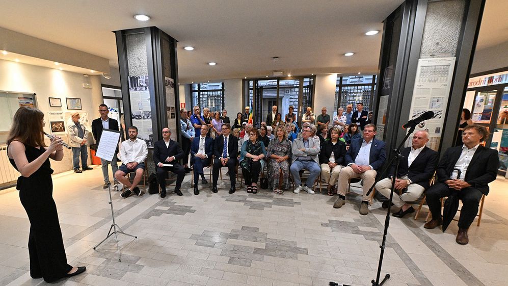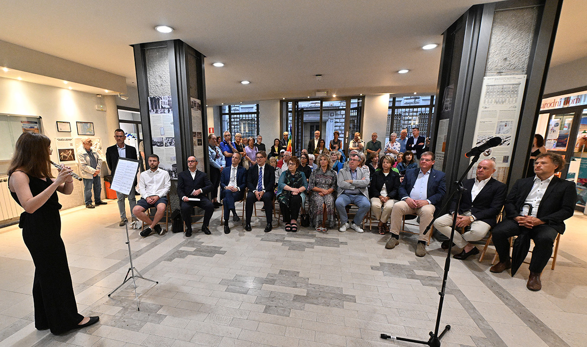 Občinstvo je na krajši, a občuteni svečanosti nagovoril podpredsednik Fundacije Narodni dom Walter Coren. Poleg njega in drugih uglednih gostov so bili na dogodku prisotni tudi predsednica SKGZ Ksenija Dobrila, predsednik SSO Walter Bandelj, konzul Republike Slovenije v Trstu Gregor Šuc, senatorka Italijanske Republike Tatjana Rojc ter deželni svetnik Marko Pisani. Govor podpredsednika je z glasbo uvedla gojenka Glasbene matice, flavtistka Katerina Bajc iz razreda profesorice Sare Bembi. Uvodoma je podpredsednik Coren pojasnil, da nameravajo ob koncu leta prirediti večji dogodek, namenjen spominu na gledališko dejavnost, ki je pred leti živela v teh prostorih.