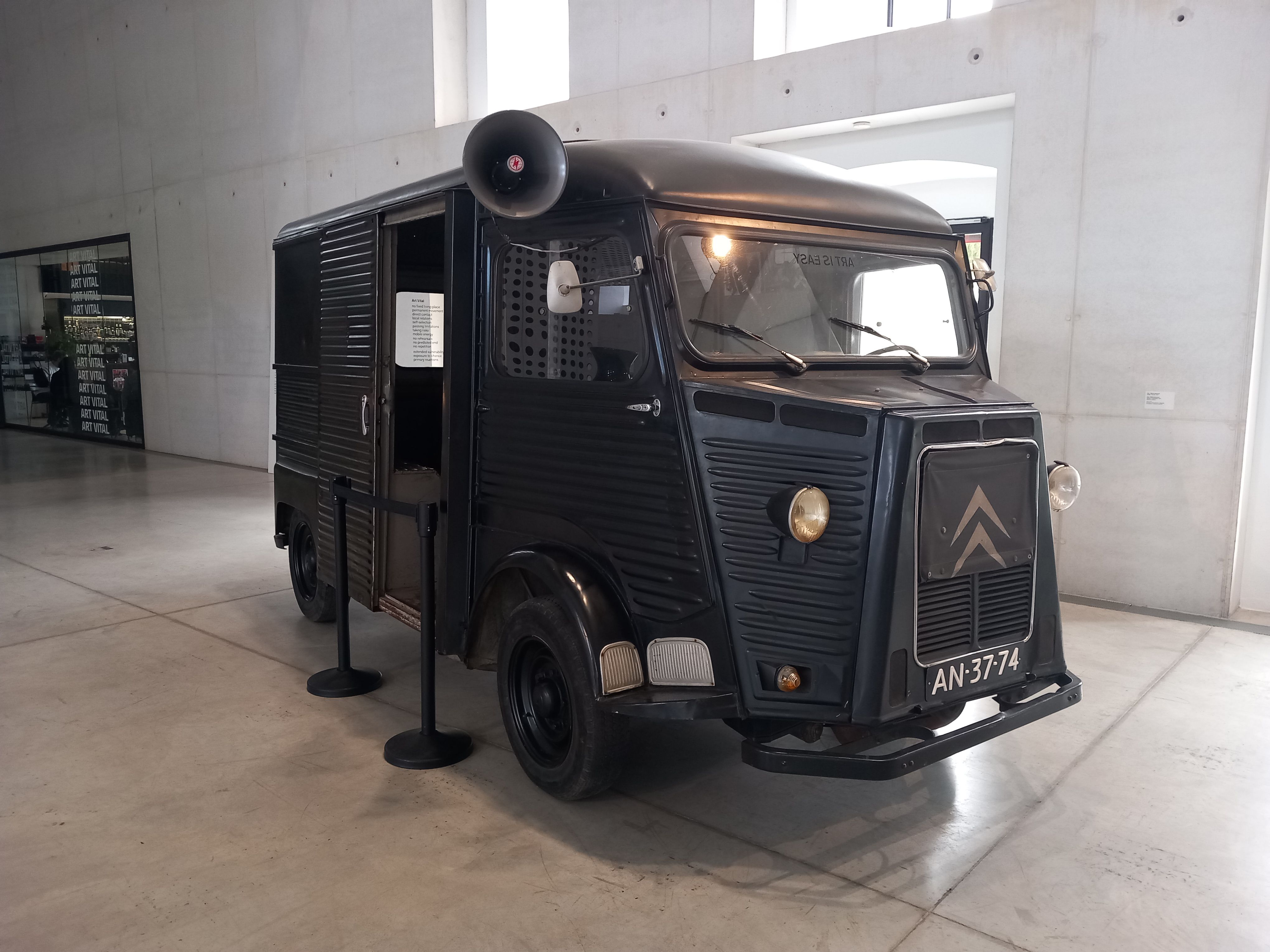 6. fotografija: Citroën HY, mobilni dom in atelje Marine Abramović in Ulaya na razstavi v Cukrarni, ki je pripotoval iz Lyonskega muzeja sodobne umetnosti. (Foto Davorin Devetak)