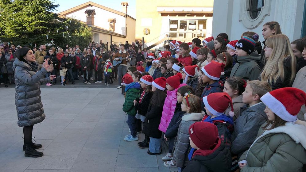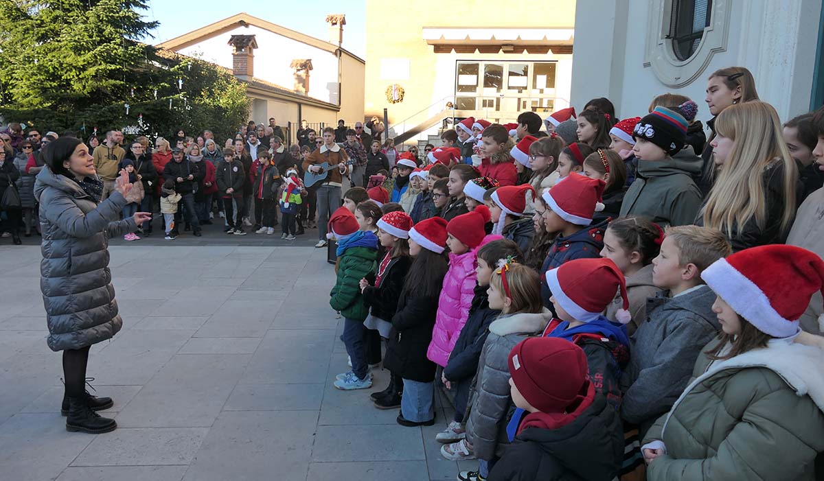 V popoldanskem času so otroci štandreškega vrtca Pika Nogavička pod vodstvom njihovih vzgojiteljic korajžno zapeli nekaj melodij, ob spremljavi kitare pa so ubrano zapeli nekaj božičnih in novoletnih pesmi učenci štandreške Osnovne šole Fran Erjavec, ki jim je dirigirala Martina Hlede. Pred zadnjo pesmijo sta povedala nekaj misli Dimitri Brajnik in predsednik sKultue 2001 Marjan Breščak. Prvi je posebno pohvalil otroke, ki so nam s svojo pesmijo podarili trenutke pristnega veselja in topline, ter njihove vzgojiteljice in učiteljice. A storili so še nekaj dragocenega: za trenutek so nas odmaknili od vsakdanjega vrveža ter nas povezali v skupnem doživetju miru, prijateljstva in bližine. Miru, ki je v tem turbulentnem času še posebno potreben. Mir pomeni harmonijo in ravnovesje in začenja se pri vsakem posamezniku. Je dragocen dar, ki ga je treba negovati, varovati in živeti vsak dan. Predsednik Marjan Breščak je napovedal celotni program praznovanja in vsem prisotnim zaželel blagoslovljen Božič in srečno v novem letu 2026. Program se je odvijal pred štandreško cerkvijo z zakusko in voščilnicami, ki so jih narisali štandreški in vrtojbenski otroci.