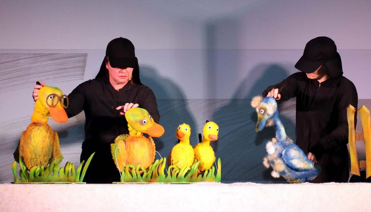 Abonenti Velikega polžka, učenci od tretjega do petega razreda osnovnih šol goriškega in doberdobskega ravnateljstva, so se 11. marca 2026, na dveh ponovitvah, še zadnjič v letošnjem šolskem letu zbrali v veliki dvorani Kulturnega centra Lojze Bratuž, da bi se udeležili njim namenjene letošnje četrte predstave, ki jo je v sklopu Goriškega vrtiljaka ponudil Kulturni center Lojze Bratuž. V goste je prišlo Grajsko lutkovno gledališče Sevnica z lutkovno predstavo Grdi raček. Tenkočutna uprizoritev, ki seže do srca, korenini v istoimenski, vsem dobro poznani pravljici, ki jo je mojstrsko stkal svetovno znani danski pisatelj in pesnik Hans Christian Andersen (1805-1875). Čeprav ima pravljična vsebina častitljiva leta (napisana je bila l. 1843), je še vedno izredno aktualna. Kolikokrat se nam zgodi, da kritično, s pomilovanjem, poniževanjem, zmrdovanjem ali celo prezirom gledamo na tiste, ki so iz kateregakoli vzroka drugačni od nas. Pri tem se pogosto ne zavedamo, da je prav raznolikost tista, ki plemeniti in bogati naš svet, in da je vsako bitje edinstveno z vsemi svojimi napakami vred. Protagonist Andersenove pravljice je mali raček, ki se je izvalil iz enega izmed jajc, ki jih je valila mama raca. A medtem ko so vsi ostali “njeni otročiči” privlačno puhasti in rumeni, je tale raček po videzu popolnoma različen od njih, njegovo puhasto perje je temno in ima nič kaj privlačen dolg vrat. Prav zaradi tega ga vsi imajo za grdega. In ta ožigosanost se ga drži kot klop, tako da se zaradi bolečega občutka nesprejetosti umakne proč od doma. Pred vsemi se skriva v ločju, saj ga nihče ne mara. S hrepenečim srcem gleda v nebo, ki ga preletavajo krasne bele ptice, katerim si želi biti podoben. Pot njegovega doraščanja je res polna poniževanj in nevarnosti. Pozimi skoraj zmrzne od mraza. Ne znajde se niti v trenutno zanj ugodnem okolju, saj ga ne čuti za svojega. Ko pa nastopi cvetoča pomlad in se čisto slučajno zazre v mlako, vidi v njej čudovito belo ptico; tej svoji preobrazbi se ne more načuditi. Iz grdega račka se je prelevil v krasnega belega laboda in pri tem našel svoje vrstnike ter se jim srečen pridružil.