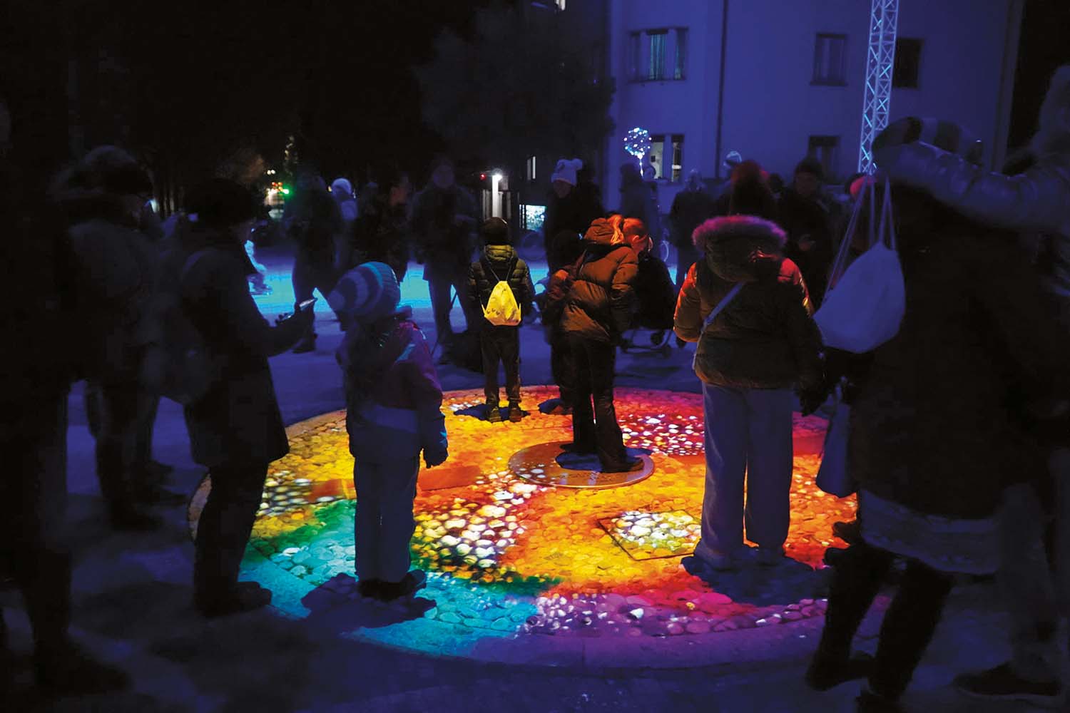 Kljub zimskemu mrazu so se številni prebivalci z obeh strani meje odeli v šale, kape in plašče ter v prazničnem vzdušju napolnili Trg Evrope – Transalpino. Občinstvo sta najprej nagovorili Mija Lorbek, direktorica Javnega zavoda GO! 2025, in umetnica Sendi Mango, predstavnica zavoda R.o.R. in društva Lumoskop_lab. Društvo je z umetniki LuMenArtist in NiNABRi© poskrbelo za umetniške svetlobne instalacije. Mija Lorbek je napovedala, da bo 5. decembra na zaključni slovesnosti EPK prvič v zgodovini javno, na velikem odru potekal slovesni prenos štafetne palice Evropskima prestolnicama kulture 2026 – “dober zgled naših dveh mest in naše sodelovanje, kljub težki zgodovini in zahtevni sedanjosti, se nalezljivo širita kot luč v Evropi. Skupaj smo svetlejši!”