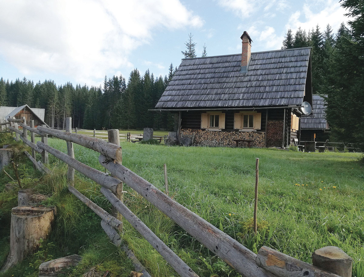 Še s kavo sem se pocrkljal, potem pa na recepciji z vavčerjem poravnal nočitev in se poslovil. Že po sto metrih me je na cesti presenetila čredica krav dojilj z nekaj mladimi telički, ki so zasedle vozni pas in se obnašale, kot da je vse njihovo. Meni, ki sem šel peš mimo, se je zdelo to zanimivo in simpatično, nekaj avtomobilistom, ki so morali v koloni čakati, da se bodo kravetine odločile za premik s ceste, pa verjetno ne. Mimo počitniških hišk sem nadaljeval do šotnega barja, ene od naravnih značilnosti Pokljuke, kjer je bilo med nizkim rastjem razpetih veliko od rosnih kapljic svetlikajočih se pajkovih mrež, ki so izgledale kot kakšne umetniške inštalacije. Naprej sem šel po makadamu in gozdnih poteh prek še nekaj planin oz. večjih čistin, obkroženih z drevesi in posejanih z vikendicami. Bile so kot iz kataloga, tako “v nulo spedenane”, da je bilo že kar malo kičasto, vseeno pa bi bil z veseljem lastnik katere od njih, tudi najmanjše ali najslabše ohranjene, da bi se lahko, kadar bi bilo le mogoče, umaknil za nekaj dni tja, v naravo, stran od ponorelega sveta v dolini.