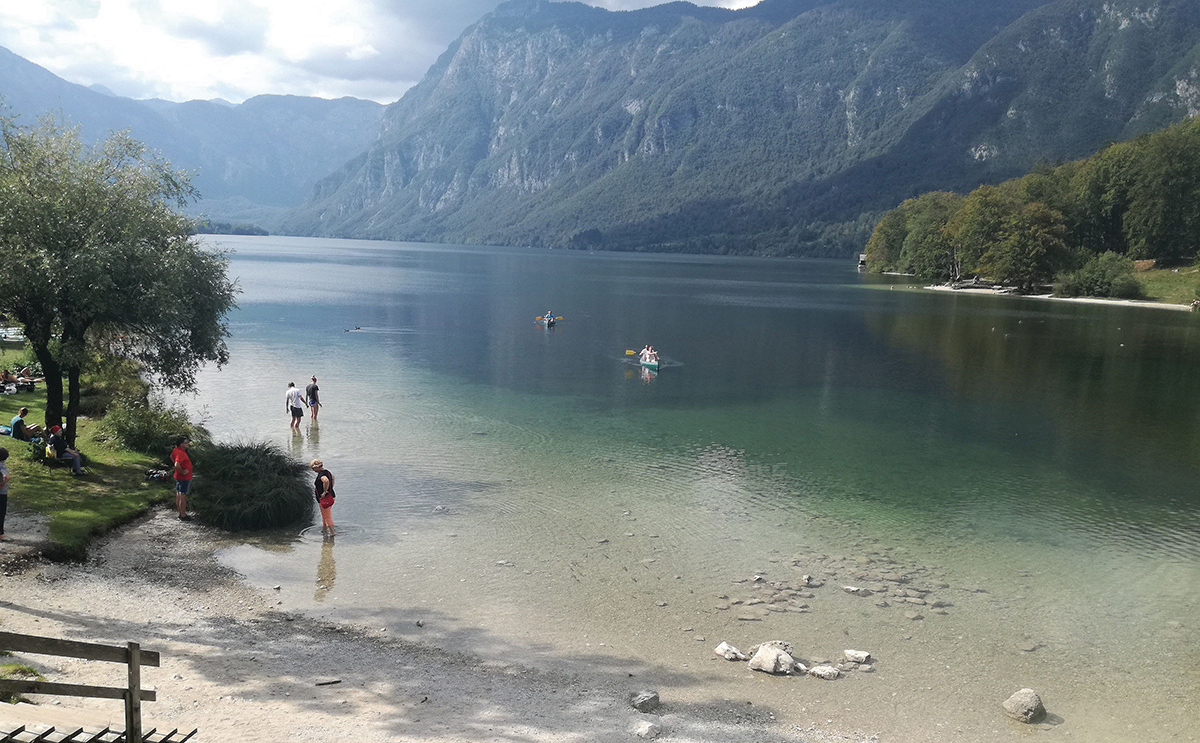 Iz Stare Fužine sem bil kmalu pri Bohinjskem jezeru, ki je imelo za moje prekurjeno stanje vrhunskih 17 stopinj. In ljudje so se seveda kopali, nekateri so supali, številni ležali ob jezerskem bregu in uživali v miru, saj je bila sezona že mimo in ni bilo več gneče, ni bilo več otrok, ki ponavadi poskrbijo za živ žav, ker so bili že v šoli. In tam sem se, priznam, sam sebi zazdel en velik kekec. Namesto da bi si snel nahrbtnik, se slekel, vrgel v jezero in malo zaplaval, se pohladil, sem, ujetnik tajminga in samodiscipline, značilne za deviško nebeško znamenje, ki me determinira, le stisnil par fotk, potem pa hitro naprej, ker je bilo treba biti čim prej popoldne na cilju, da bi se cunje, oprane takoj po strečingu in tuširanju, pravočasno posušile. Zelo neumno se sliši, a po drugi strani je res tako, sicer lahko pride do logističnih težav, se kje zalomi in začne načrt razpadati, kar sem imel tudi že priložnost opazovati, tudi pri ljudeh, s katerimi sem bil skupaj na poti, pa so se morali po nekaj dneh posloviti, ker jih je zafrknilo prav to – padli so na izpitu iz logistike in discipline. No, včasih bi bil lahko vseeno malo bolj fleksibilen, ne tako tog. En “tufič” v jezero bi se res prilegel in bi si ga vendarle lahko privoščil.