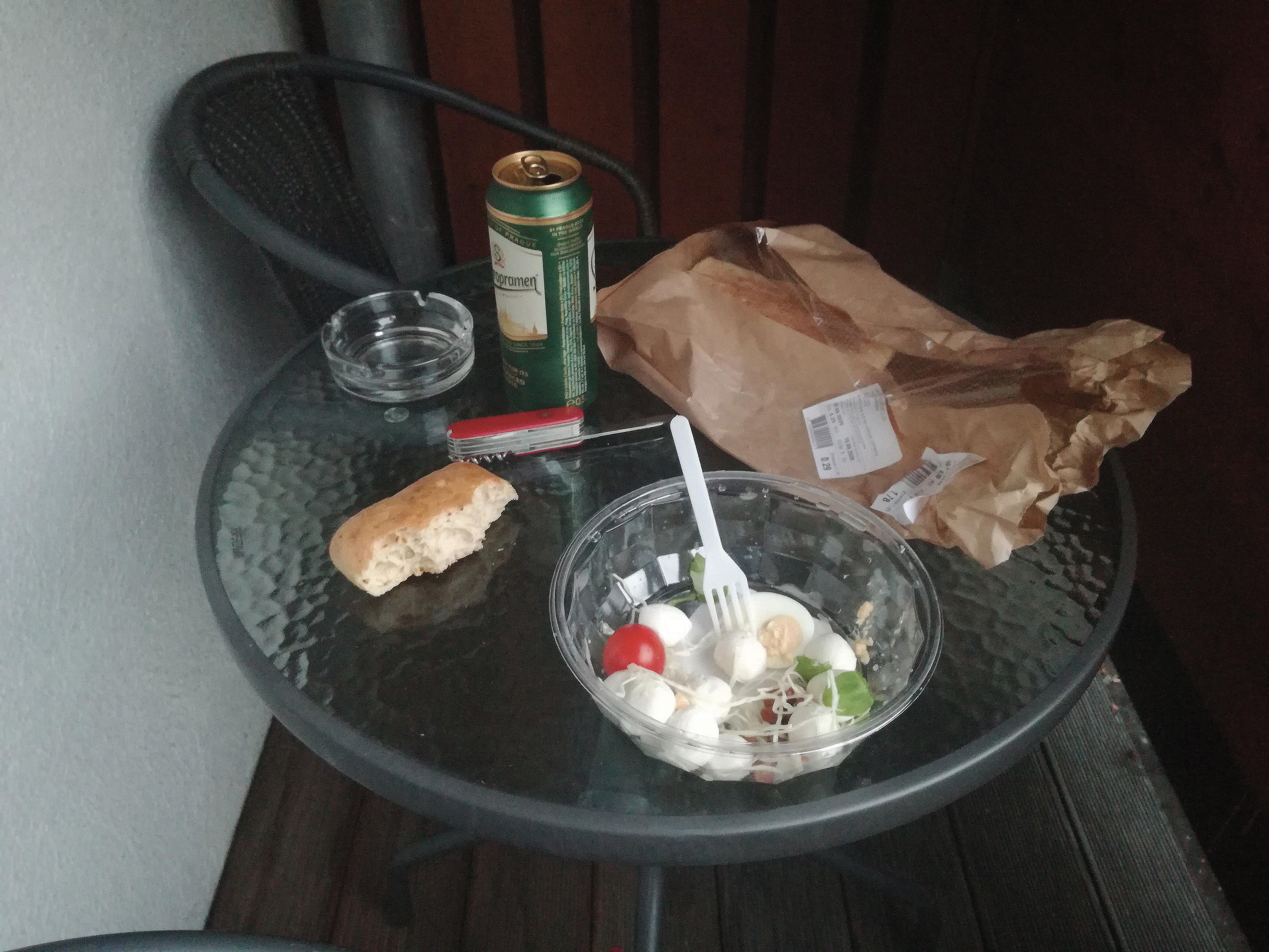 Večerja iz vrečke na hotelskem balkonu