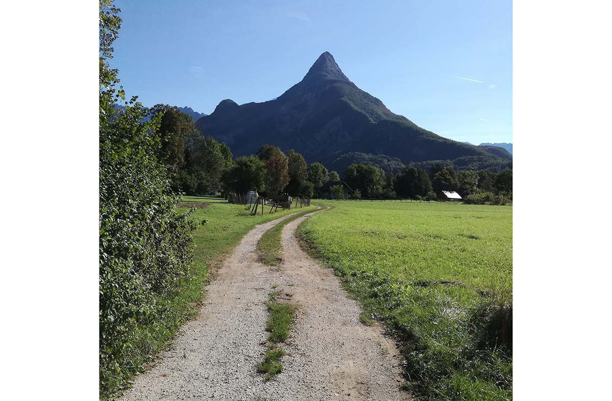 Druga slika: Na začetku poti, le nekaj korakov od konca asfalta v Bovcu
