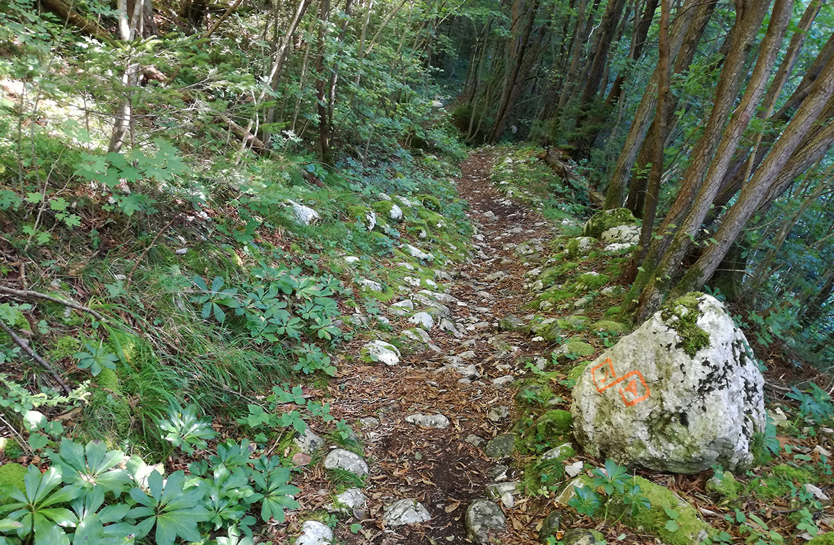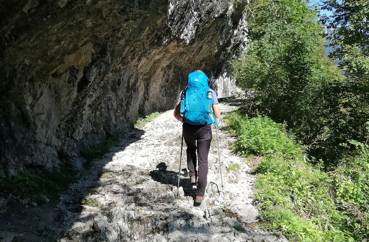 Prva slika: Po v skalo vsekani poti v bližini trdnjave Kluže