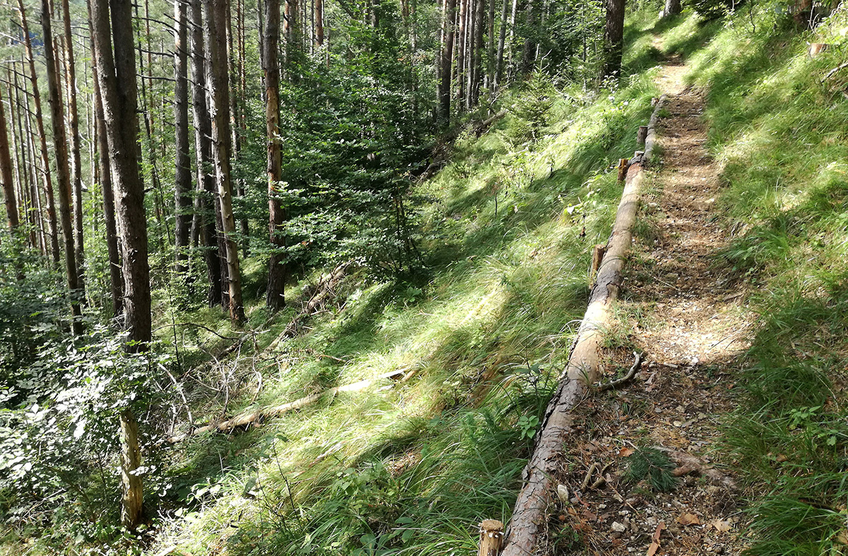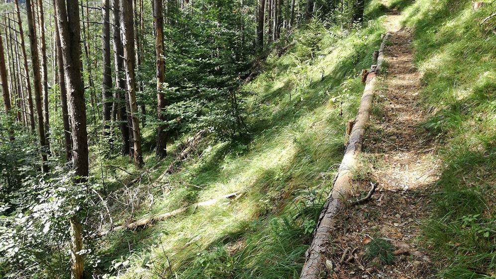 Druga slika: Pešpot proti Predelu vodi lep čas tik pod prometno cesto do prelaza in meje z Italijo