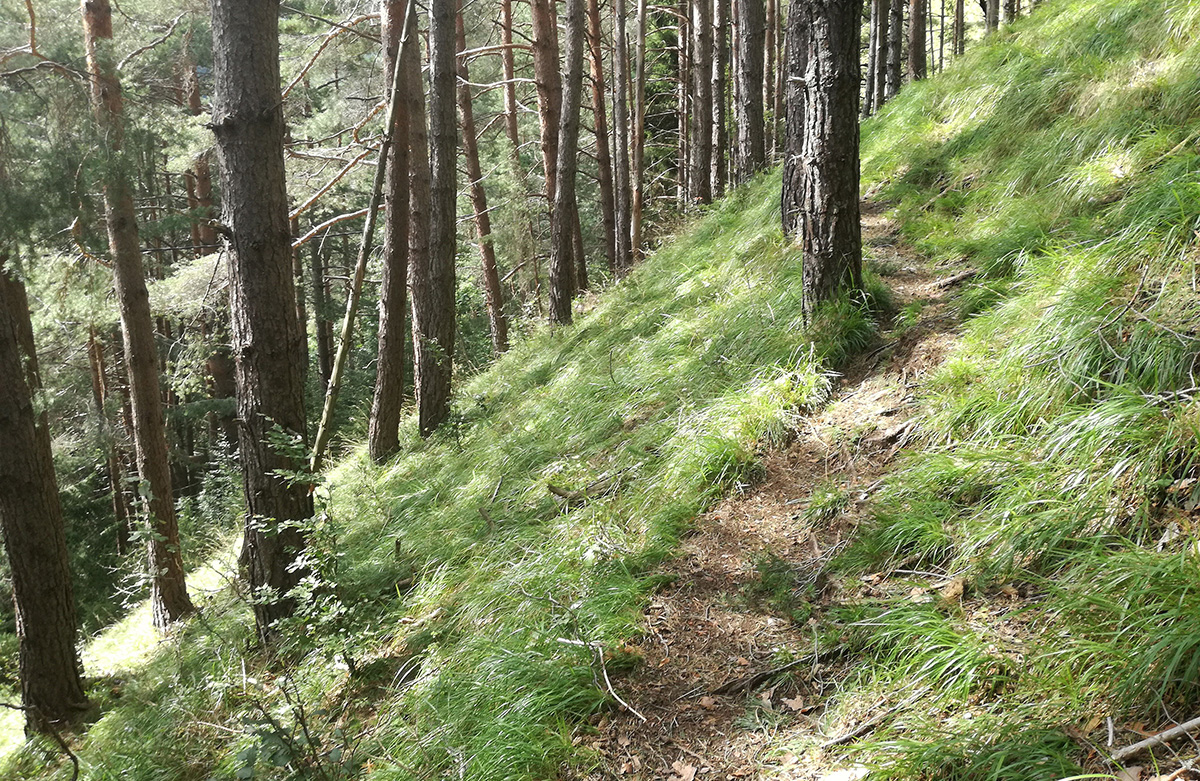 Prva slika: Lepo utrjena enosledna pot skozi gozd v Strmec