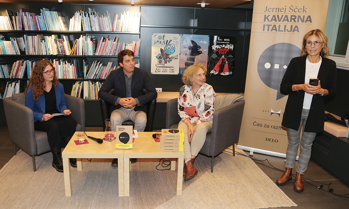 Po pozdravu direktorice NŠK Luise Gergolet je avtorja v imenu založbe ZTT z nekaj vprašanji najprej izzvala urednica Martina Kafol, nato pa je s poudarkom na temah, ki zadevajo svet mladih, pogovor nadaljevala članica skupine mladih SKGZ Katarina Visintin.