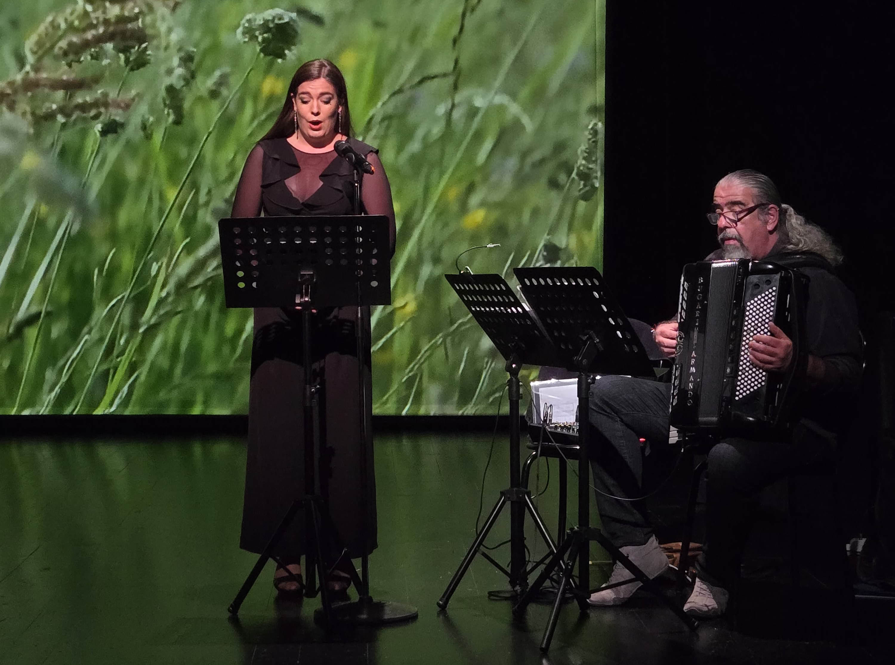 Predstavo so bogatile tudi poezije Ljubke Šorli. Nekatere izmed teh je prebrala igralka, druge pa zapela sopranistka Rebeka Pregelj. Celoto je spremljala melodija harmonike, na katero je igral Aleksander Ipavec, ki je tudi avtor skladb. Zvok instrumenta je popeljal občinstvo v spomine Ljubke Šorli s tem, da je ojačil lepoto enih in dramatičnost drugih. Izbira glasbene spremljave je bila v skladu z zgodbo, saj je bila Šorlijeva tudi glasbenica.