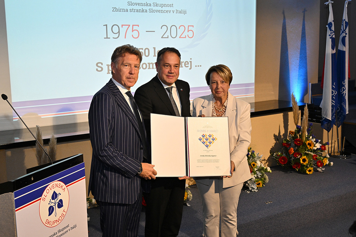 Podpredsednik slovenske vlade in minister za Slovence v zamejstvu in po svetu Matej Arčon je stranki Slovenska skupnost izročil priznanje in zahvalo za dolgoletno zastopanje politične, kulturne in narodne identitete Slovencev v Italiji, za vztrajno uveljavljanje slovenskega glasu v italijanskem političnem prostoru ter za ohranjanje in krepitev vezi z matično domovino. Posebno priznanje in zahvalo urada je dobil tudi Rafko Dolhar (v njegovem imenu ga je prevzela hčerka Katja), eden ustanoviteljev stranke, za svojo neprecenljivo vlogo pri oblikovanju politične prisotnosti Slovencev v FJK ter dolgoletno, predano delo v korist slovenske narodne skupnosti.