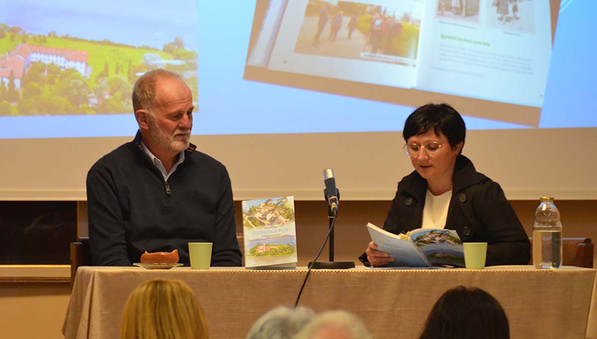 Na začetku nas je pozdravila Aleksandra Lisjak v imenu gostitelja, novogoriških odraslih skavtov – Jazbecev. Nato sta na oder prišla avtor Žarko Mlekuž, tudi sam odrasli skavt, član Buških gamsov, torej iz Bovca, in voditeljica Petra Krivec. Za začetek smo prisluhnili predstavitvi romarske poti: ta ima tri veje, od katerih je dokončana samo italijanska – slovenska bo baje urejena v kratkem, avstrijsko pa bomo verjetno čakali še nekaj časa. Avtor je pot začel že nekoliko prej kot v Ogleju – na Barbani (in jo tudi zaključil kasneje, v svojem rojstnem kraju Log pod Mangartom). Pot je dolga 220 kilometrov in je izjemno zanimiva. Ima spletno stran in je dobro označena, njen znak je ribica. Na začetku, dokler vodi po Furlanski nižini, ni posebno zahtevna, v drugem delu pa je treba kar nekaj kondicije in gorniške izkušenosti, saj so višinske razlike pri prečkanju Alp precejšnje. Pot je zabeležena kot kombinacija njegovega romanja s svojo skavtsko skupino in pa solo romanja. Pisanja se Žarko ni lotil takoj, ko je pot prehodil – knjiga je v njem zorela skoraj celo leto. Na predstavitvi je avtor podelil nekaj ključnih točk svoje življenjske zgodbe. Kot otrok je imel hudo izkušnjo otroške paralize, zaradi katere je bil štiri mesece odtrgan od bližine staršev. Naslednji udarec je bil, da je že za peti razred osnovne šole moral v dijaški dom in se vračal domov samo vsakih štirinajst dni. Pravi, da mu je takrat srce okamenelo – a se tudi utrdilo. Študij je čutil kot veliko odgovornost, saj se je zavedal truda staršev, ki je bil v ozadju. Glavna stvar zanj pa je družina; z ženo imata dva otroka in zdaj tudi že štiri vnuke. Vzgojen je bil katoliško, kot študent pa je “pozabil na Boga”, ki ga je nato kar nekaj časa iskal pri drugih verah. V krščanstvo ga je vrnilo branje Svetega pisma. Že od otroštva je “zastrupljen” z gorami – saj tudi biva v njihovem naročju. Njihova skavtska skupina je nastala na romanju na Višarje, a že prej jih družilo mnogo podobnosti. Odraslo skavtstvo ni toliko vzgoja, je bolj sopotništvo, meni. Na romanju kot skavti najbolj čutijo, da so bratje in sestre, saj tam ni prostora za individualizem. Njegovo prvo romanje je bilo na Višarje z mamo in še vedno vsako leto vsaj dvakrat odide tja. Višarje so mu kot Marijino svetišče posebno blizu, saj se prepozna v njeni drži, da je “premišljevala v srcu”. Ta romarska pot ni posebno obljudena, na njej imaš dovolj miru za poglabljanje vase. A vseeno je na poti zelo lepo poskrbljeno za prenočišča in hrano. Dragoceno mu je izkušati, kako ga ljudje sprejemajo kot romarja. Letos gredo s skavtsko skupino v Assisi. Večer smo zaključili z zahvalami in ob sproščenem klepetu še malce prigriznili.