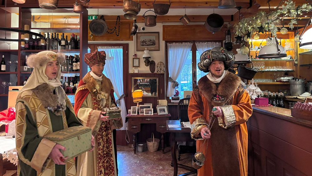 Povsod so prisrčno sprejeli mlade kolednike, ki poosebljajo Svete tri kralje z Vzhoda, Miho, Gašperja in Boltežarja. Kot vselej so bili skrbno oblečeni v razkošne kostume s pisanimi našitki in z značilnimi vzhodnjaškimi pokrivali, na rokah pa so imeli “dragocen” nakit. Kraljevska oblačila sta si že v preteklih letih zamislili in jih s šiviljsko izkušenostjo in potrpežljivostjo sešili Snežica Černic, v gledaliških ljubiteljskih krogih zelo dobro poznana kostumistka, ki zna vselej z okusom obleči katerikoli dramski lik in je tudi letos sodelovala pri pripravah na koledovanje, ter njena žal že pokojna sodelavka, marljiva in iznajdljiva šivilja Irene Grusovin.