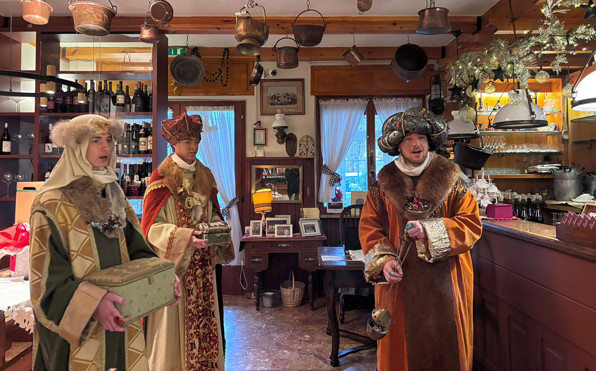 Na dan Gospodovega razglašenja, 6. januarja 2026, je jutranjo sv. mašo vodil p. Jan Cvetek. Žal tudi tokrat – kot v vseh teh prazničnih dneh – ni bilo ob njem nobenega strežnika. Zvesto pa je bil v cerkvi ves božični čas prisoten, “cerkovniški službi” popolnoma predan Florijan Vogrič, ki je dočakal že mnogo skrivnosti polnih božičnih noči. Pred samim začetkom bogoslužja so v cerkev stopili koledniki iz Števerjana, mladi fantje, ki res vzorno iz leta v leto obujajo več stoletno navado s pomenljivimi koledniškimi pesmimi, ki se po ustnem izročilu pretakajo iz roda v rod. Kot že nekaj let se je na obhod hiš po števerjanskih zaselkih in predelih (Jazbine, Grojna, Valerišče, Bukovje, Ščedno …) odpravilo šest kolednikov. Skupina, ki so jo sestavljali Ivan Boškin, Luka Boškin in Patrik Mania’, je zapela koledniško pesem (“Skoz to zvezdo smo spoznali, da je rojen Judov kralj. Prišli smo trije kralji z jutrovih dežel. Mesija smo iskali po mestu Betlehem …”) pred pevmskimi jaslicami in se iz cerkve poslovila s pesmijo v zahvalo za dar in pojasnilom, da tudi letos zbirajo denarna sredstva v dobrodelne namene, za ABC Burlo Garofalo iz Trsta in ANFFAS iz Gorice.