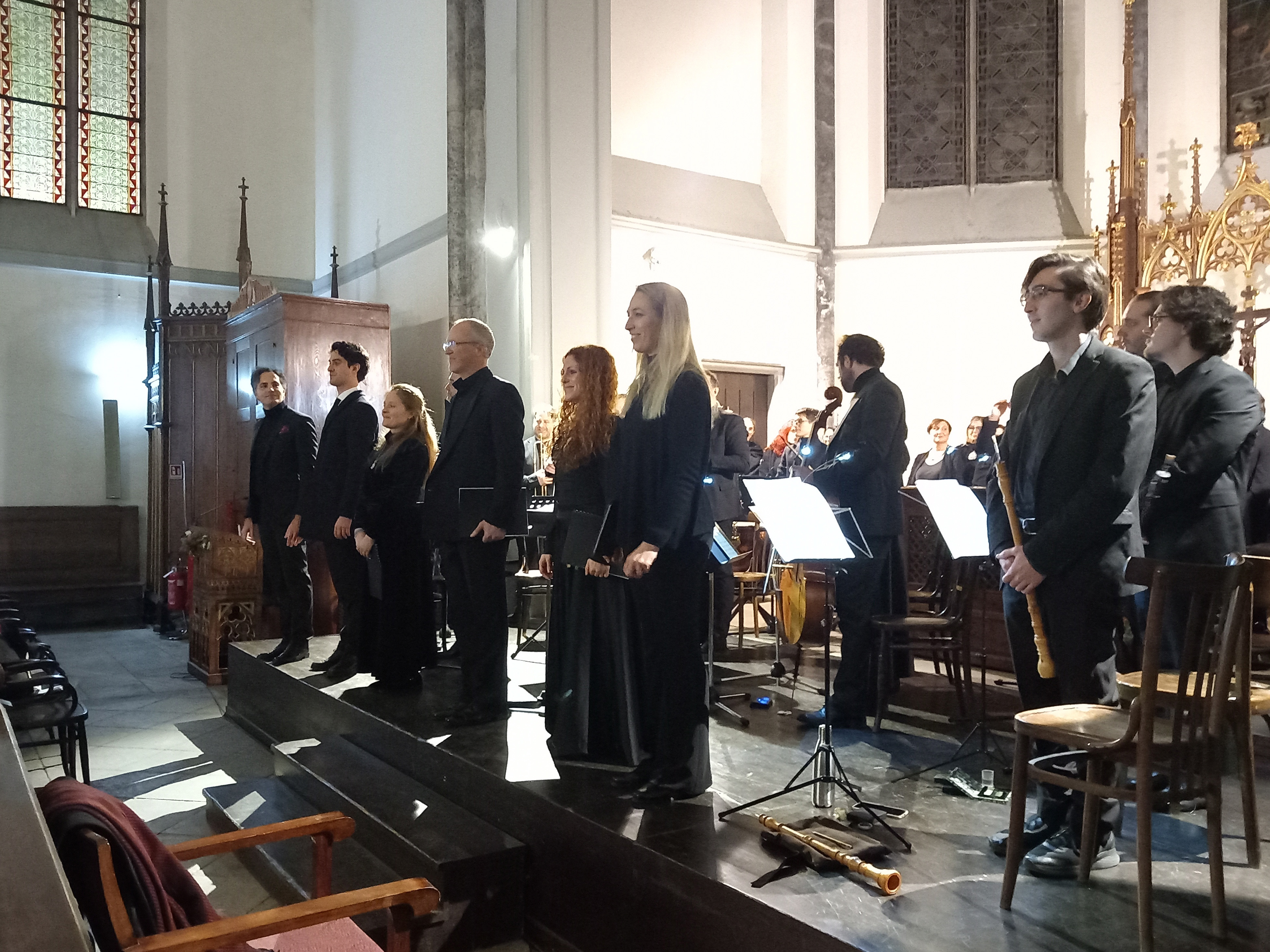 V evangeličanski luteranski cerkvi v Trstu smo poslušali Bachova koncerta. Komorni orkester iz Pordenona in Zbor Furlanije Julijske krajine Coro FVG sta 4. decembra pod taktirko Elie Macrìja izvajala sakralni kantati BWV 171 Gospod, kakor je tvoje ime, tako je tudi tvoj sloves in BWV 120 Bog, tebe hvalijo v tišini, v katerih so ob sopranih Paoli Crema in Delii Stabile, kontraltu Fabiani Polli, tenorju Claudiu Zinuttiju in baritonu Manuelu Sedmaku, odmevali, včasih tudi v “unisonu”, značilni baročni instrumenti, violine, viola, čelo, kontrabas, oboi, fagot, trobente, timpani, orgle in seveda mogočni zborovski glasovi. Kaka harmonija in sozvočje med glasbo in besedilom, ki danes, v našem zapletenem in krvavem svetu, zvenita še posebej aktualno!