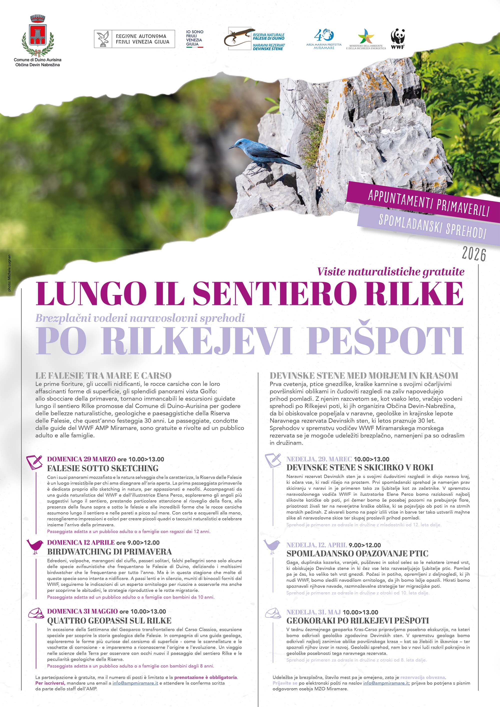 Občina Devin – Nabrežina in Morski naravni rezervat Miramare sta tudi letos pripravila niz srečanj za spoznavanje lepot in naravoslovnih posebnosti Deželnega naravnega rezervata Devinske stene. Prvo srečanje bo v nedeljo, 29. marca, skozi celo leto pa bodo na svoj račun prišli ljubitelji znanosti, umetnosti, kulture in rekreacije.