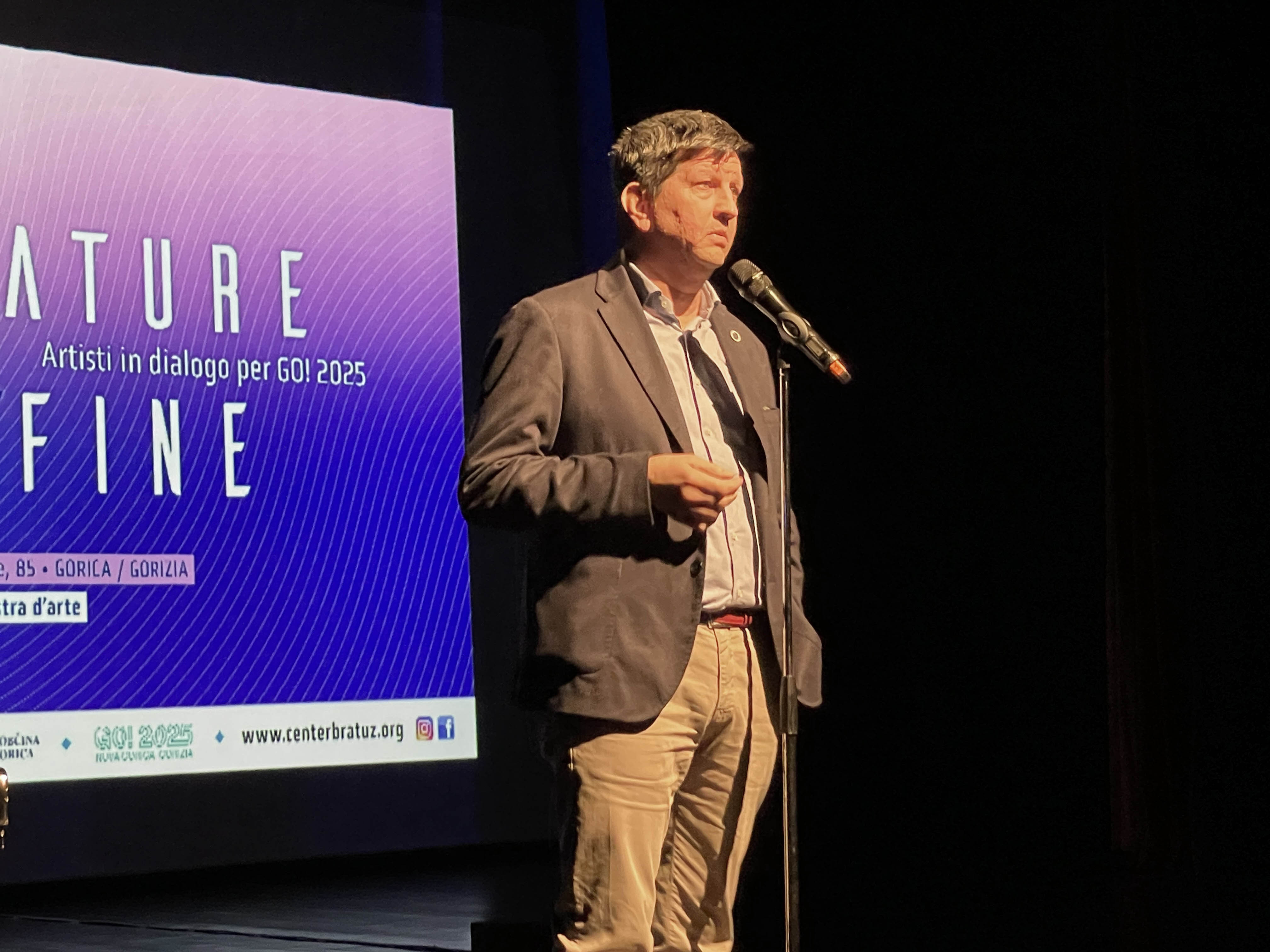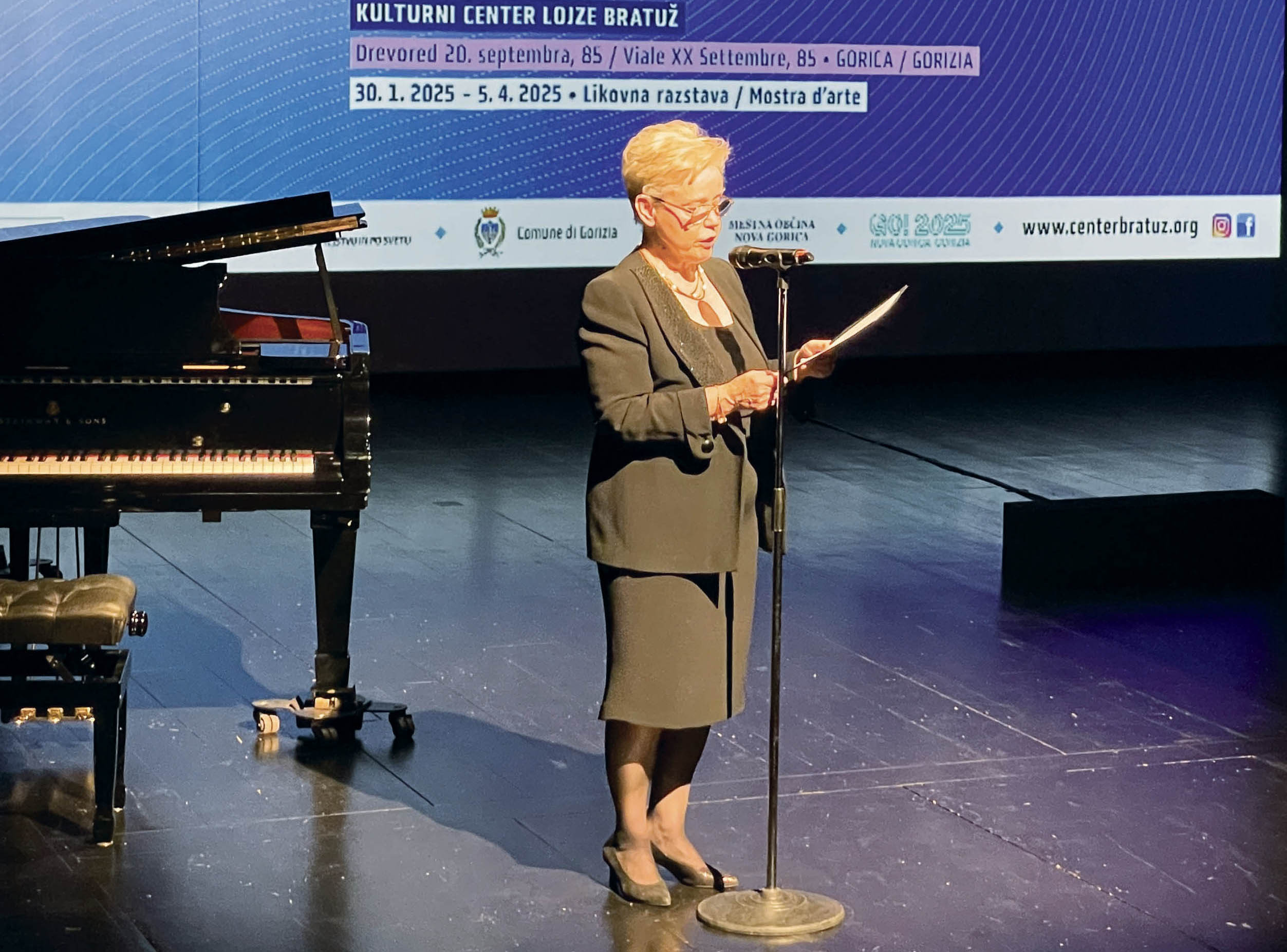 Po pozdravu goriškega občinskega odbornika Fabrizia Oretija sta za glasbeni intermezzo poskrbeli violinistka Mateja Manzato, gojenka SCGV Emil Komel iz razreda prof. Mojce Križnič, in prof. Eva Dolinšek, ki jo je spremljala na klavirju. Povezovalka večera Ema Terpin je nato besedo predala Saši Quinziju. Umetnostni zgodovinar je začetno spregovoril o Lojzetu Bratužu, “ki ni poznal meje, živel je na Goriškem, ko sta bili mesti ob meji še enotni, celoviti”, in o njegovi ženi Ljubki Šorli, “ki je mejo poznala in nam je pokazala, kako se lahko ob meji živi, kako se lahko mejo prekorači”. Quinzi se je nanašal na pesničine poezije s tolminsko tematiko, v katerih je “čustveno obarvala prehod meje”, pokazala na to, kaj pomeni čezmejno doživljati Goriško.