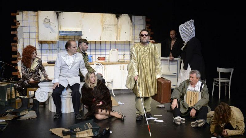 Novo leto je Slovenskemu narodnemu gledališču Nova Gorica prineslo šesto uprizoritev letošnje sezone. Tokratna predstava je bila v vseh ozirih posebna. Najprej zato, ker se je na slovenskih odrih krstno pojavila komedija Bogastvo – Ploutos velikega grškega predstavnika stare komedije Aristofana, ki je prvič bila uprizorjena v Atenah l. 388 pred Kristusom. SNG Nova Gorica pa jo je premierno uprizorilo na malem odru, v četrtek, 10., in v petek, 11. januarja 2013, v režjii Luke Martina Škofa, predstavnika mlajše generacije režiserjev, ki nenehno iščejo nova izrazna umetniška pota. Čeprav je nastala v nam izredno oddaljenem času in v drugačnih razmerah, je njena vsebina silno aktualna. Kot že sam naslov pove, se vsebina suče okrog bogastva, ki ga navadno uživajo nevredni malopridneži, medtem ko se morajo pošteni ljudje celo življenje truditi za vsakdanji kruh in se večkrat prebijati celo skozi revščino. O tem je prepričan pošten Atenec Hremil, ki bi rad v Apolonovem svetišču izvedel, ali se bo moral vse življenje otepati revščine tudi njegov sin. Preročišče, ki ga je obiskal v družbi zvestega služabnika Kariona, mu da zagoneten odgovor: slediti mora prvi osebi, ki jo sreča po odhodu iz templja. In Hremil stori natanko tako: sledi ušivemu, zanemarjenemu slepcu. Ta pa se izkaže, da ni nihče drug kot sam bog Ploutos. Slep pa je zato, da bi čim bolj pravično razdeljeval bogastvo. Hremil pa ga, v prepričanju, da bo potem vse boljše, pospremi v Asklepijev tempelj, da bi spregledal. Žal pa tudi tako Hremil ne doseže tega, kar je želel. Ko tudi preprosti, prej dobri in pošteni ljudje okusijo lesk zlata, se izpridijo. Nihče noče več delati, vsi bi radi imeli zmeraj več denarja. Prav na to je zaman svarila Revščina in jim zagotavljala, da, ko bodo obogateli tudi revni, nihče ne bo več hotel garati. “Ali boste žrli denar in zlato”? jih je izzivalno vprašala. Na tem antičnem mitu sta svoje videnje o bogatenju, bogastvu oz. kako bi bilo, če bi bilo bogastvo enakomerno porazdeljeno med ljudmi, in v povezavi s tem o današnjih dogajanjih, predvsem v Sloveniji, zgradila avtorsko priredbo dramaturg Jaka Andrej Vojevec in režiser Luka Martin Škof, ki je bil tokrat tretjič gost v novogoriškem gledališču. V tekstu sta Vojevec in Škof hotela prikazati, kako “Slovenci razmišljamo o družbi, tranziciji, svobodi, obliki vladanja. Kakor sta sama dejala, besedila nista dokončno izdelala, izoblikovalo se je sproti na vajah, tako da je vsak od nastopajočih igralcev doprinesel nekaj svojega. Tako se je razvijala nekakšna “eksperimentalna” predstava, kakor v zlatih časih goriškega festivala malih odrov. Nastala je drzna, mestoma duhovita, na trenutke pa taka predstava, ki ne malo zmede gledalca, ki mora ‘ujeti miselno nit’. Avtorja sta tudi poudarila, da uprizoritev vsebuje elemente “metagledališča”, ko se oder povezuje z občinstvom, zabrisuje meja med iluzijo igre in stvarnostjo, saj je “življenje samo postalo oder”. Tega pa seveda nista odkrila onadva. Vsi veliki dramski pisci so bili in so o tem prepričani, saj vsak izmed njih prinaša na oder vse, kar se dogaja v resničnem življenju. To so delali že stari Grki in sam Aristofan, ki je v svojih delih neusmiljeno bičal politične, družbene in kulturne razmere svojega časa, ki pa niso kdo ve kaj različne od naših. Ker je sam uporabljal sočen jezik in plastično izražanje, polno duhovitih namigovanj in ostrih bodic, bi morda kazalo postaviti na oder njegovo delo takšno, kakršno se nam je ohranilo, saj so teme, ki so jih obravnavali veliki antični mojstri, brezčasne, prav zato, ker se tičejo človeka in njegovih večno se ponavljajočih napak. Včasih se zdi, da se ti avtorji pošteno maščujejo, če jih sodobni ustvarjalci “posiljujejo” z nekimi inovativnimi posegi v njihova besedila.