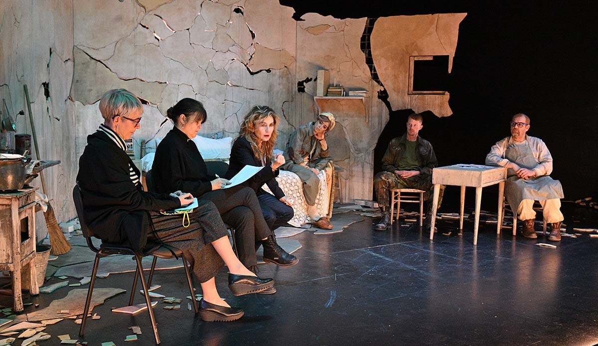 Tudi igralka Nikla Petruška Panizon je omenila, da se je s svojim likom lahko poistovetila na podlagi asociacij iz zgodb svojih prednikov, ki so na lastni koži doživeli prvo in drugo svetovno vojno. Na tiskovni konferenci so se predstavili vsi trije nastopajoči: poleg Nikle Petruške Panizon še en član domačega ansambla, Franko Korošec, ter mladi gost, dramski in filmski igralec iz Ljubljane Borut Doljšak, ki prvič nastopa v SSG. Korošec je poudaril aktualnost besedila, ki je po njegovem mnenju ogledalo sodobnega časa. Doljšak pa je predstavil svoj lik – stražnika, o katerem je povedal, da je orodje v rokah sistema, vendar ga nazadnje omehčajo čustva.