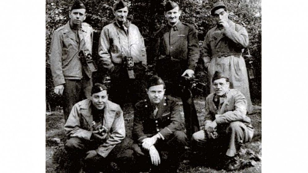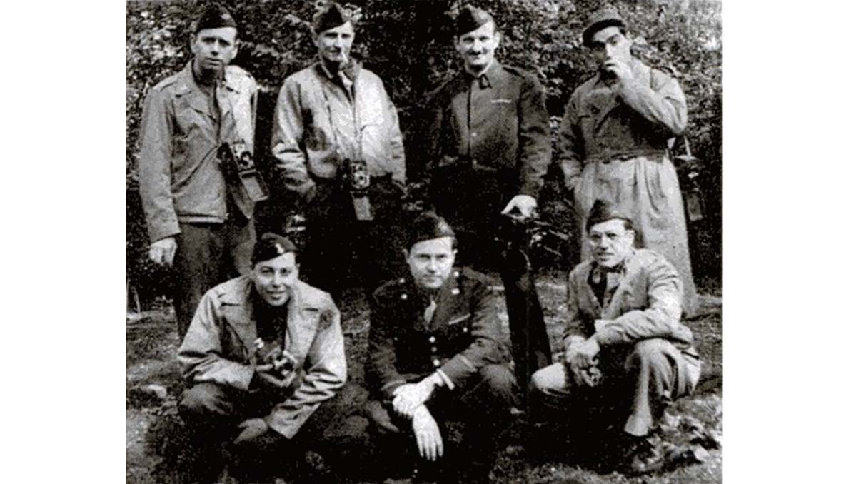 1. fotografija: Fotografi revije Life pred dnevom D v Normandiji. Od leve (stojijo) Robert Landry, George Rodger, Frank Scherschel, Robert Capa, klečijo Ralph Morse, John Morris in David Scherman. Razen Cape, ki je umrl zaradi eksplozije bombe med francosko vojno v Indokini leta 1954, so vsi ostali umrli naravne smrti. Za razliko od več kot 250 medijskih reporterjev, ki so bili od 7. oktobra 2023 ubiti v Gazi, in devetih v Libanonu, na zadnje časnikarke Amal Khalil, o kateri je poročala Francesca Mannocchi. Upajmo, da se ne bo nič zgodilo pogumni poročevalki La Stampe.