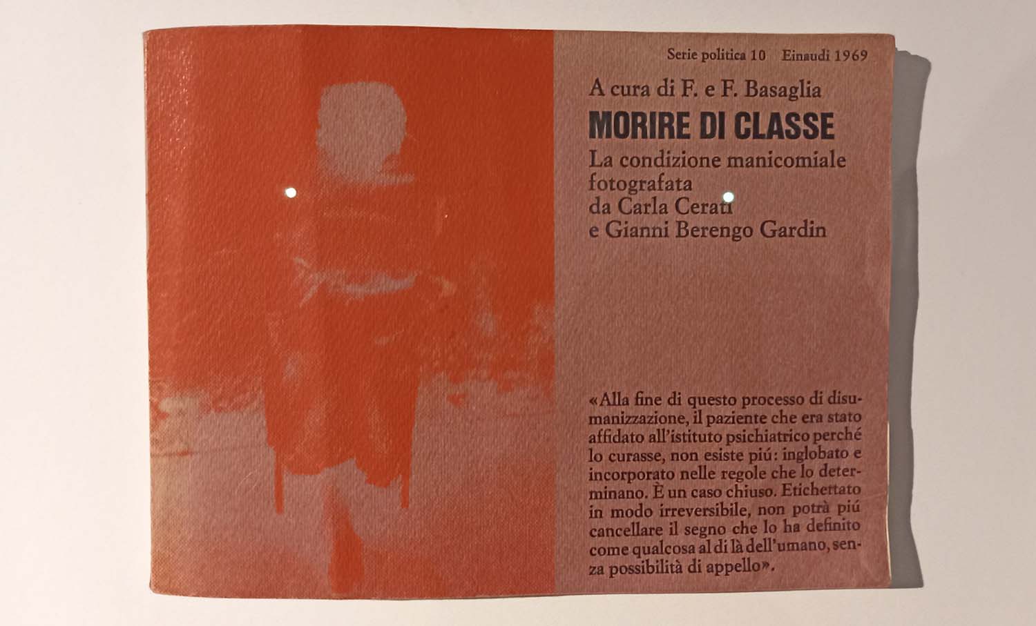 2. fotografija: Platnica zgodovinske knjige Morire di classe (Razredna smrt) s slikami Carle Cerati in Giannija Berenga Gardina, ki sta jo uredila Franco in Franca Basaglia (Einaudi 1968)