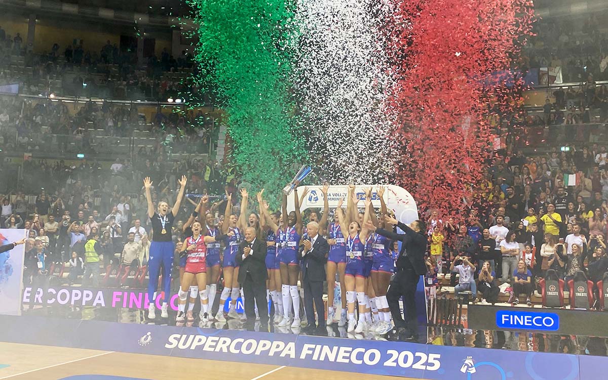 Na italijanski odbojkarski ženski superpokal se uvrstita dve ekipi na podlagi rezultatov prejšnje sezone. Tako sta se letos pomerili ekipi Prosecco Doc A. Carraro Imoco Conegliano ter Numia Vero Volley Milano. Italijanska odbojkarska federacija je za ta tehtni dogodek izbrala prav naše mesto v zalivu oz. športno palačo PalaTrieste v Trstu, kjer je pred malo več kot enim letom potekala tudi tekma za Pokal Italije.